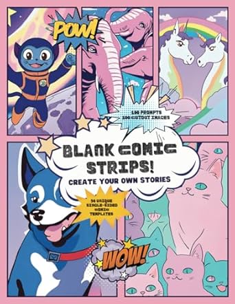 Blank Comic Book Template for Kids: Unleash Your Creativity! Ignite your imagination and create your own epic comic adventures with our Blank Comic Book Template for Kids ! What’s Inside? 50 Unique Blank Templates : Each template is single-sided to prevent bleed-through, allowing you to create vibrant, mess-free comics. 100 Creative Prompts : Stuck on a story idea? Our fun and engaging prompts will kickstart your imagination and get those creative juices flowing! 100 Cut-Out Images : Add flair to your comics with these easy-to-use cut-outs. Just cut, glue, and watch your stories come to life! Brainstorming Page : Plan your plot, develop your characters, and map out your entire comic book on this dedicated page. Features: Generous Size : 8.5×11 inches, perfect for detailed illustrations and expansive storylines. Single-Sided Pages : Ensures no bleed-through, so every page is as crisp as the last. Durable and High-Quality : Made with kids in mind, our comic book template is designed to withstand hours of creative play. Perfect For: Young Artists : Encourages creativity and artistic expression. Aspiring Storytellers : Helps develop narrative skills and imagination. Classroom Activities : Great for teachers looking for an interactive and educational activity. Gifts : The perfect gift for birthdays, holidays, or just because! Why Choose Our Comic Book Template? Engaging and Fun : With prompts and cut-out images, your child will be entertained for hours. Educational : Enhances storytelling abilities, fine motor skills, and creativity. Versatile : Ideal for home, school, or on-the-go. Let your child step into the role of author and illustrator with the Blank Comic Book Template for Kids . Whether they’re dreaming up superhero adventures, hilarious jokes, or magical worlds, this book provides the perfect canvas for their stories. Order now and watch their creativity soar! —- ISBN: nan