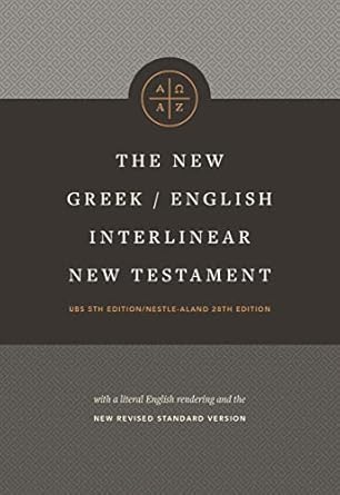 The bestselling New Greek/English Interlinear New Testament has been updated for the twenty-first century with the United Bible Societies’ 5th edition/Nestle-Aland 28th edition text, recognized by Greek scholars and students worldwide as the standard Greek New Testament. This portable interlinear New Testament makes the Greek text accessible to a wide audience–including Greek students, former Greek students, pastors, and laypeople who want a deeper understanding of the Greek text of the New Testament. It contains a basic, word-for-word translation of the Greek text and the entire text of the New Revised Standard Version in parallel. Textual notes indicating Old Testament quotations and significant textual variants are also included. —- ISBN: 9781496443984 | ISBN10: 1496443985 | ISBN-13: 978-1496443984