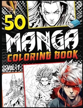Manga coloring book: 50 Unique and Beautiful Anime Drawings to Colour – Japanese manga coloring book Shonen Fight Ninja Samurai Shaman Magician … children, Teenagers, Adults, girls and boys.