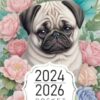 HomeCalendars & AnnualsPocket Calendar 2024-2026: Two-Year Monthly Planner for Purse , 36 Months from January 2024 to December 2026 | Cute baby pug face illustration | Fantasy floral splash