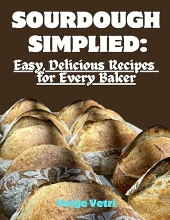 Sourdough Simplified: Easy, Delicious Recipes for Every Baker Discover the art of sourdough baking with Sourdough Simplified: Easy, Delicious Recipes for Every Baker , your ultimate guide to crafting mouthwatering loaves with ease. Whether you’re a complete beginner or an experienced baker looking to refine your skills, this book breaks down the sourdough process into simple, achievable steps—no complicated techniques or expensive equipment required. Inside, you’ll learn: ✔️ The science behind sourdough: Understand the fermentation process and how to maintain a healthy starter. ✔️ Step-by-step guidance: From mixing and kneading to proofing and baking, every stage is clearly explained. ✔️ Foolproof recipes: Classic sourdough bread, rustic whole wheat, sandwich loaves, focaccia, bagels, pancakes, and more. ✔️ Troubleshooting tips: Learn how to fix common baking mistakes and perfect your crust and crumb. ✔️ Creative variations: Experiment with add-ins like herbs, cheeses, fruits, and nuts to personalize your bread. With beautiful photos, clear instructions, and helpful pro tips, Sourdough Simplified will transform you into a confident sourdough baker. Say goodbye to store-bought bread and hello to the joy of baking fresh, homemade loaves! —- ISBN: 9798315002741 | ISBN10: B0F25Y6KDS | ISBN-13: 979-8315002741
