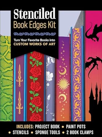 Stenciled Book Edges Kit: Turn Your Favorite Books into Custom Works of Art – Includes: Project Book, Paint Pots, Stencils, Sponge Tools, Book Clamps