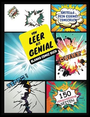 Von Leer bis Genial: Blanko Comic buch. Erstelle dein eigenes Comic-Buch mit 150 einzigartigen und originellen Vorlagen. Leeres Comicbuch mit Tipps. ... Geschenk zur Förderung kreativer Köpfe.