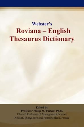 The goal of Webster’s Online Dictionary is to give all people of the world free access to a complete mapping of all known words to and from all written languages. In fulfillment of this goal, Webster’s Online Dictionary (www.websters-online-dictionary.org) also offers as much information as possible for each word, including definitions, translations, images, trade name usage, quotations, and encyclopedic knowledge. The proceeds generated by the sale of this Roviana–English thesaurus dictionary as well as other books extracted from the project will be used to augment the contents of the Webster’s Online Dictionary. —- ISBN: 9780497836856 | ISBN10: 0497836858 | ISBN-13: 978-0497836856